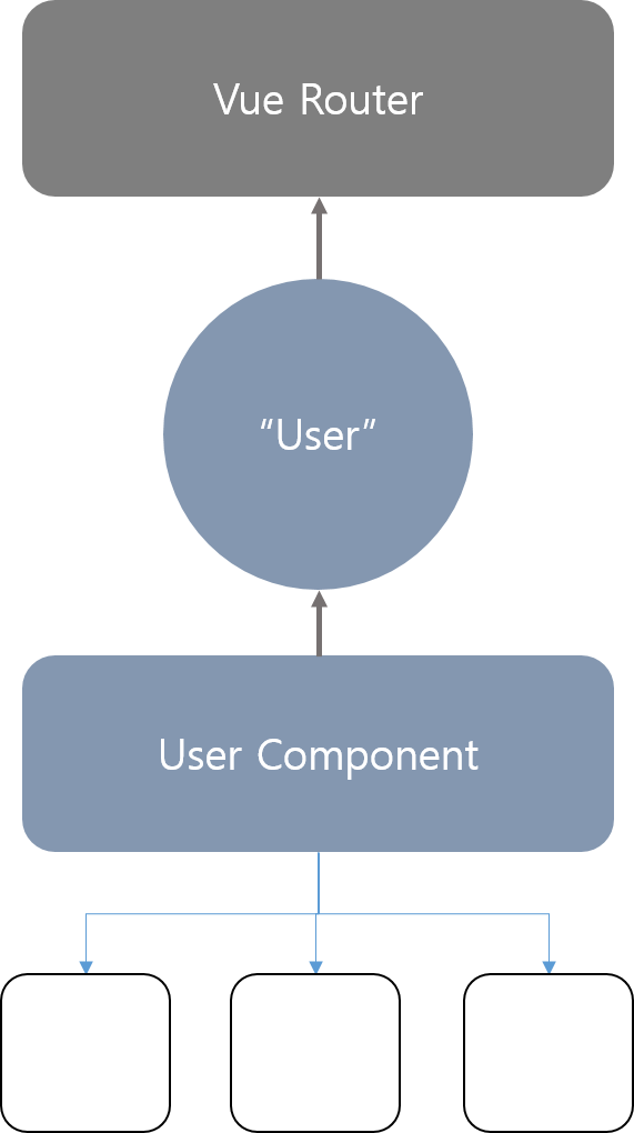 user를 vue router 가 캐치를 함 user 이름이 있는지 찾고 user 에 매칭 시켜놓은 user component를 찾음 여러가지 조합으로 이루어져 있는 user component 를전달 router 를 그것을 화면에 뿌려줌